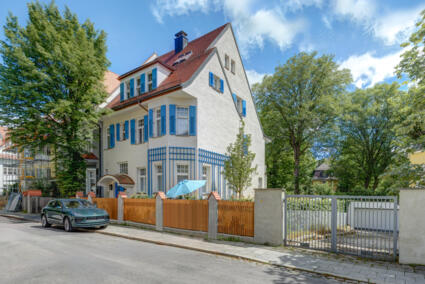 Die denkmalgeschützte Villa von 1908 ist Teil einer Reihenhausgruppe von Paul Böhmer und gleichzeitig Bestandteil des Ensembles „Villenkolonie Nymphenburg-Gern“. Somit unterliegen bei einer Sanierung nicht nur äußere und innere Bauteile sowie Dachkonstruktion aus der Erbauerzeit der Erhaltungspflicht, sondern auch Bausubstanz und Ausstattung aus späteren, historischen Bauepochen. Dies war teilweise mittels Befunduntersuchungen nachzuweisen. Neben dem Erhalt und der Restaurierung wurden einzelne Bauteile originalgetreu nachgebaut. Zwischen denkmalgerechter Sanierung und Umbaumaßnahmen, die auch einer modernen Wohnnutzung gerecht werden, war eine enge Abstimmung mit der Denkmalschutzbehörde notwendig.