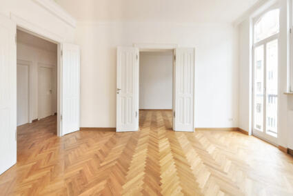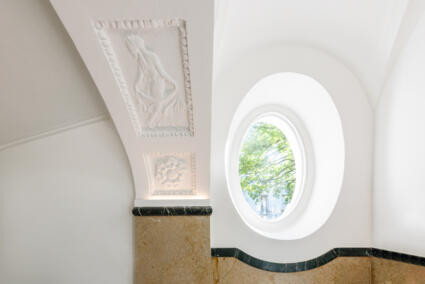 Die Sanierungsarbeiten umfassten die Erneuerung der kompletten Elektro- und Sanitärinstallation sowie aller Oberflächen im 2. Obergeschoss. Hier wurde die Fassade um einen Balkon und weitere Fenster nach historischem Vorbild ergänzt.
