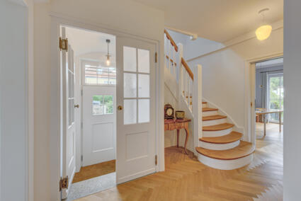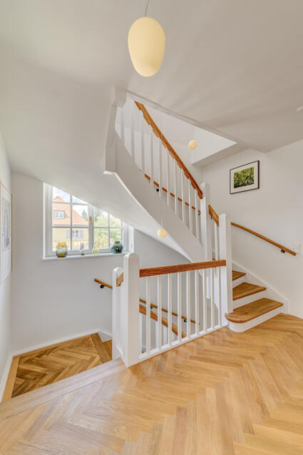Die Oberflächen und Bodenbeläge wurden im gesamten Haus erneuert oder sorgfältig aufgearbeitet. Dabei wurde auf eine hochwertige Materialauswahl geachtet, die den historischen Charakter unterstreicht.